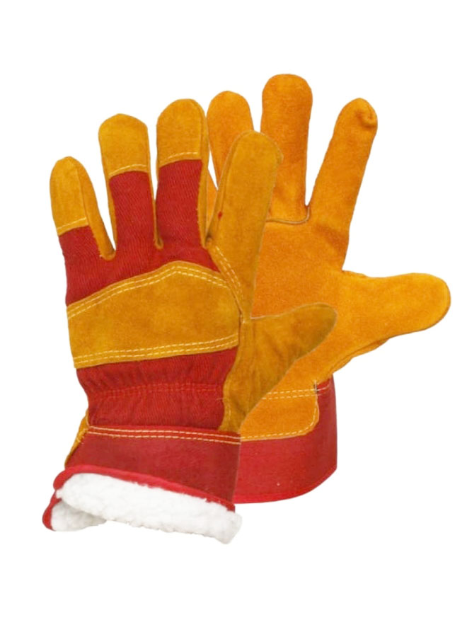 Утепленные перчатки из прочного, стойкого к проколам, истиранию и разрыву 100% кожевенного спилка. Подкладка из искусственного плотного меха белого цвета. На ладонной части и пальцах накладки из дополнительного слоя кожи. Манжеты в виде краг, швы двойные.