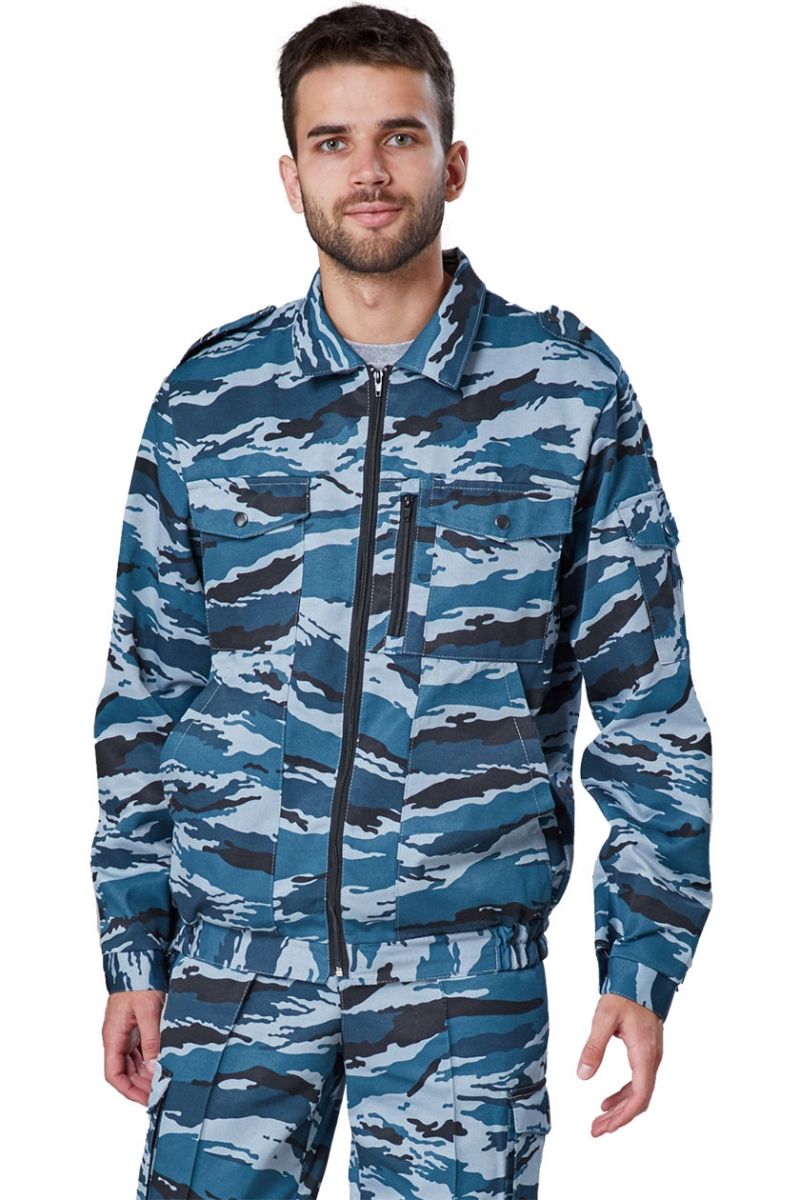 ➠ Куртка укороченная, центральная застежка на тесьму «молния». Два нагрудных накладных кармана с фигурными клапанами, застегивающимися на кнопки, и боковые накладные карманы с наклонным входом. На левой полочке так же обработан накладной карман, застегивающий не тесьму «молния». Рукава с манжетами, застегивающимися на пуговицы. На левом рукаве накладной карман с фигурным клапаном, застегивающимся на кнопку. Так же на накладном кармане обработан прорезной карман, застегивающийся на тесьму «молния». Притачной пояс стянут по бокам эластичной тесьмой. В области плечевых швов погоны, застегивающиеся на кнопки.