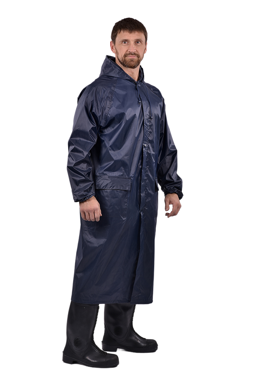 Плащ прямого силуэта, центральная застёжка на молнии, ветрозащитная планка на кнопках для дополнительной защиты от влаги.